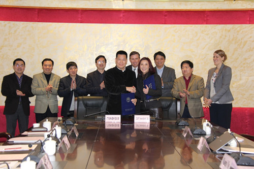 1月15日上午,广东外语外贸大学与全球排名前五的语言服务商CSOFT公司的战略合作洽谈会暨战略合作框架协议签约仪式在该校北校行政楼会议室成功举行。我协会长、广东外语外贸大学校长仲伟合,副校长何传添,发展规划处处长詹文都,科研处处长陈彦辉,我协副会长、该校高翻学院院长平洪,党委书记高云坚等出席本次洽谈会,与CSOFT总裁叶雪泥、副总裁Matt Arney、副总裁薛川等一行五人进行了协商洽谈。双方就战略合作框架、合作发展协同创新中心、人才培养、科学研究、学科建设等方面进行了深入且富有成效的讨论,并随后举行了战略合作框架协议签约仪式。