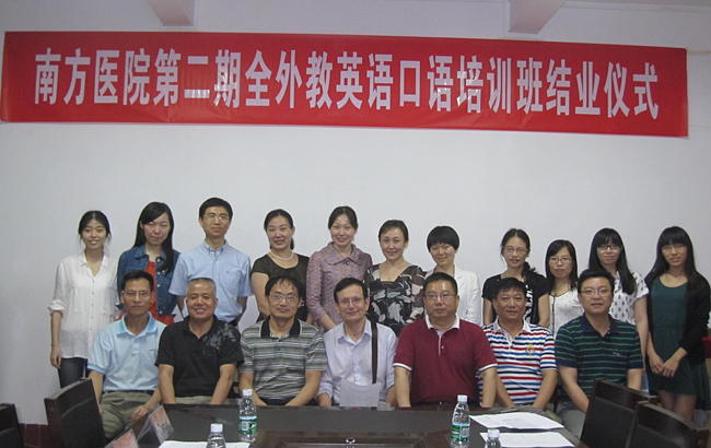 4月29日,南方医院第二期全外教英语口语培训班结业仪式在南方医科大学外国语学院会议室举行。南方医院吴汉森副院长、组织人事处惠明副处长;我协副会长、南方医科大学外国语学院唐伟胜院长,吴让科副院长;培训班全体学员;培训班课程组老师、助教参加了结业仪式。结业仪式由吴让科副院长主持。