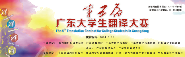 2.具体比赛地点、指导老师登记等未尽事宜,请加入第五届广东省翻译大赛qq群304010924,我们将在群里做后续通知。