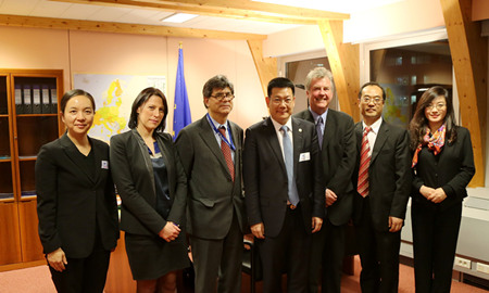 11月24日下午,仲伟合访问位于布鲁塞尔的欧盟口译总司,与口译总司代理司长Carlos Alegria、中国区负责人Paul Brennan等商谈广外与欧盟口译总司深化合作事宜。经过商谈,在继续广外与欧盟口译司现有合作基础上,从2016年春季起欧盟口译司将接受2名广外学子到欧盟实习。