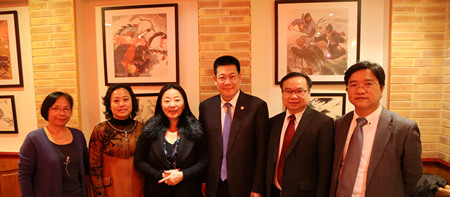 11月25日晚上,仲伟合在巴黎看望广外法国校友会主要负责人,与广外法国校友会会长邱秀贤、副会长赵洪喜等校友以及广外派驻中国驻法国大使馆教育处一等秘书尹丽老师等会晤。校友同事欢聚一堂,回忆往事、共叙发展,互道问候与祝福,场面十分感人。