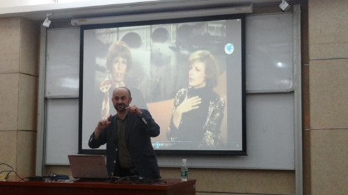 谢尔盖•丘列涅夫以“Translation in society”为题给在场师生上了精彩的一课。他分别从“翻译在社会中”与“翻译为了社会”,“翻译的国内社会作用”与“翻译的国际社会作用”和“翻译是一种社会行为”与“译者是一个社会代言人”三个方面对“社会翻译”进行详细的阐释。