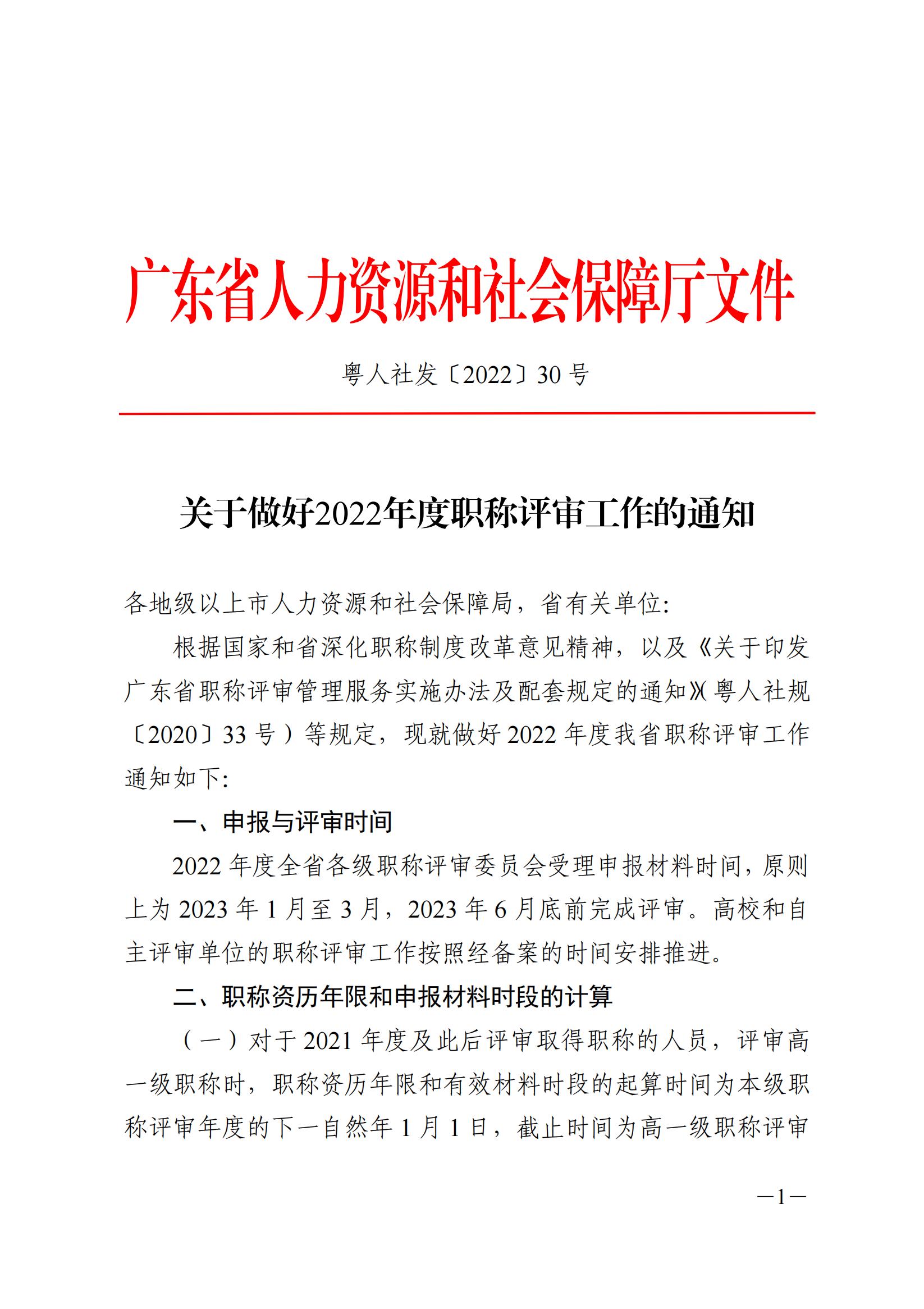 广东省人力资源和社会保障厅《关于做好2022年度职称评审工作的通知》