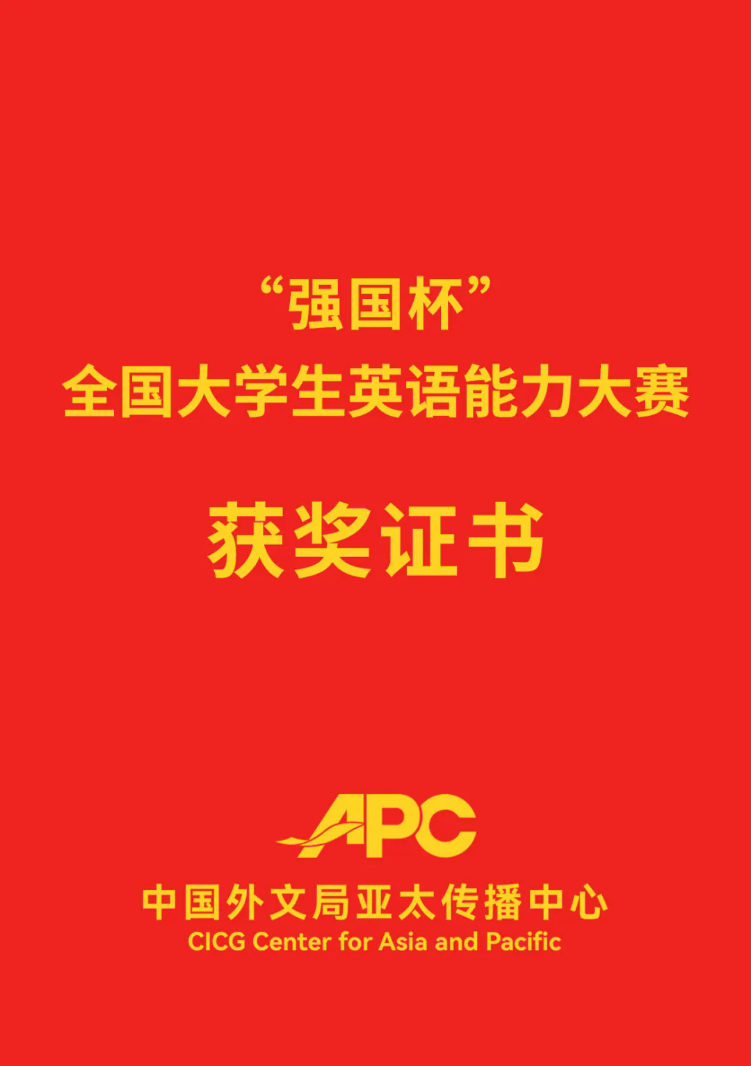 获奖选手/教师/单位将获得由中国外文局亚太传播中心颁发的荣誉证书。